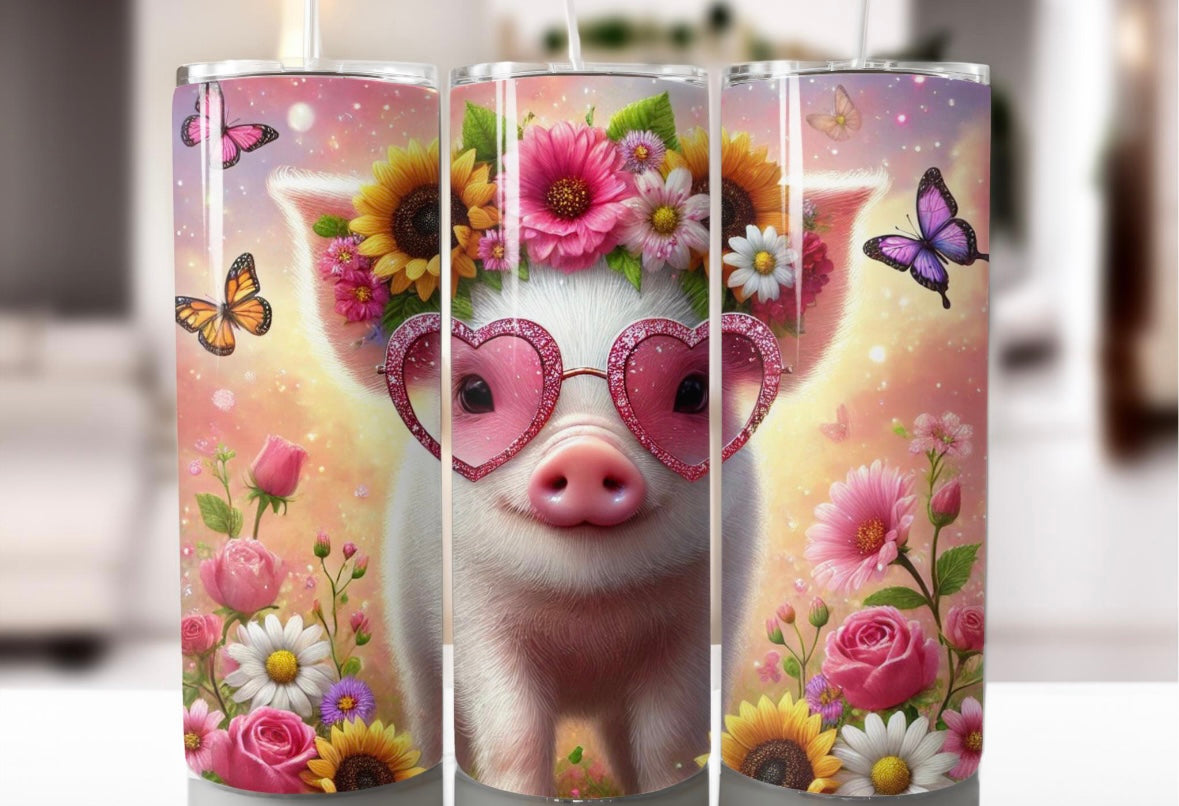 Tumbler varkentje met roze bril